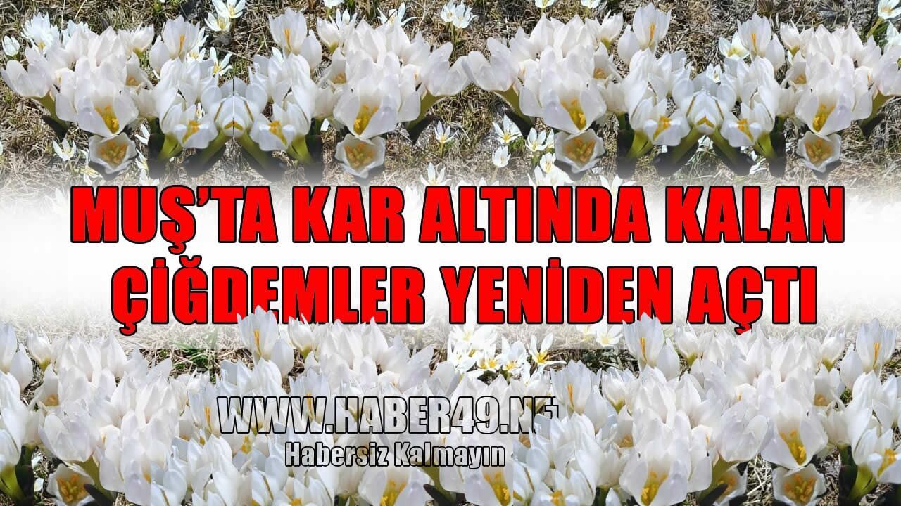 Muş’ta kar altında kalan çiğdem çiçekleri havaların ısınmasıyla birlikte yeniden açtı. Baharın müjdecisi olarak bilinen çiğdemler, karların erimesiyle birlikte tekrar görsel şölen oluşturdu.