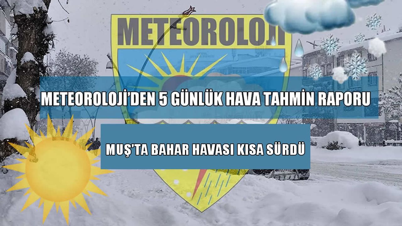 Meteoroloji verilerine göre, Muş’ta kar yağışının 10 Şubat'a kadar aralıklarla devam etmesi bekleniyor. Gece saatlerinde hava sıcaklıklarının eksi 6 dereceye kadar düşeceği, gündüz ise sıcaklıkların en yüksek 2–3 derece seviyelerinde seyredeceği bildirildi.