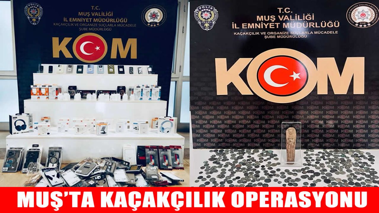 HABER49-Muş İl Emniyet Müdürlüğü ekiplerince bugün gerçekleştirilen iki ayrı operasyonda, tarihi eser ve gümrük kaçağı ürünler ele geçirildi. Kaçakçılık ve Organize Suçlarla Mücadele Şube Müdürlüğü tarafından yürütülen çalışmalar kapsamında, 2863 Sayılı Kültür ve Tabiat Varlıklarını Koruma Kanunu çerçevesinde belirlenen bir adrese operasyon düzenlendi.