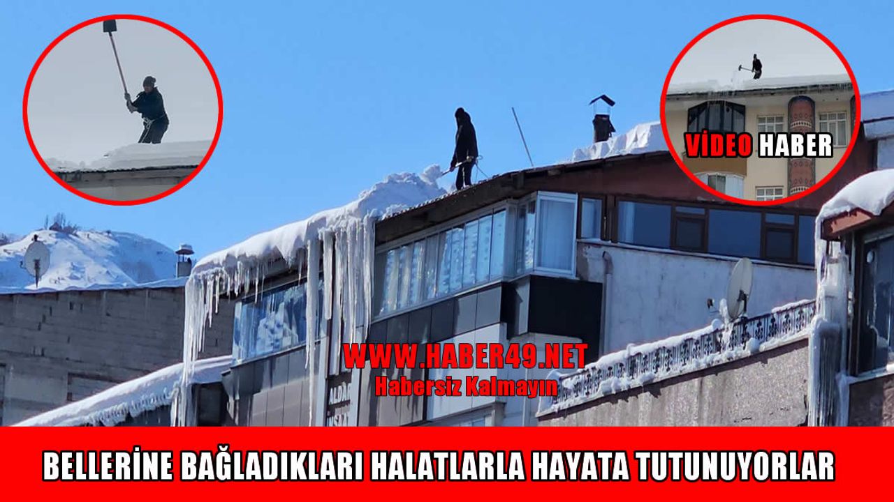 Çatıların çökme riskini ortadan kaldırarak vatandaşların can güvenliğini sağlayan işçiler, "Kar bizim için hem çile hem de ekmek kapısı. Yükseklik korkumuz var ama mecburuz. Kendi güvenliğimizi halatlarla sağlayıp ekmeğimizin peşine düşüyoruz" dedi.