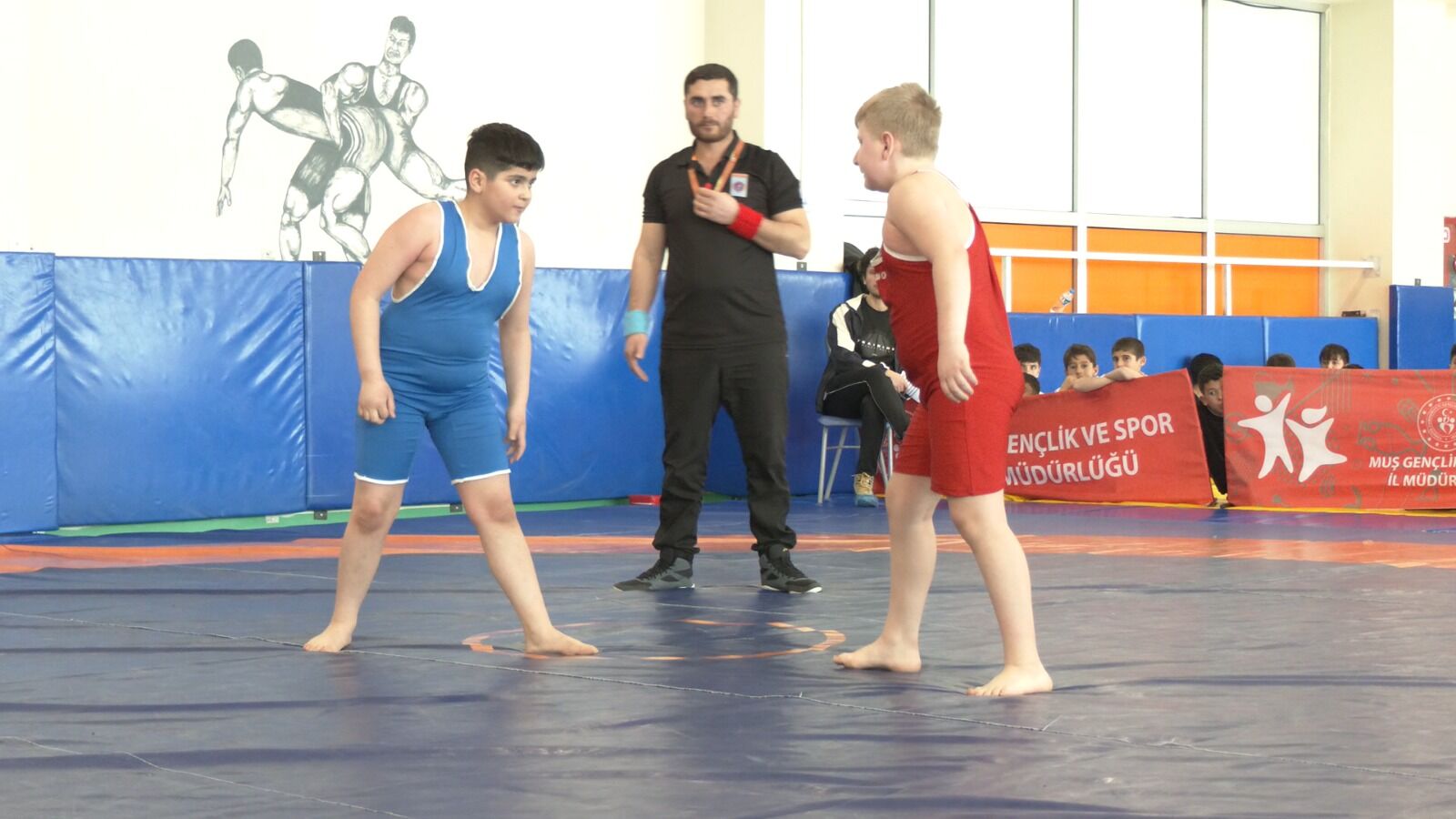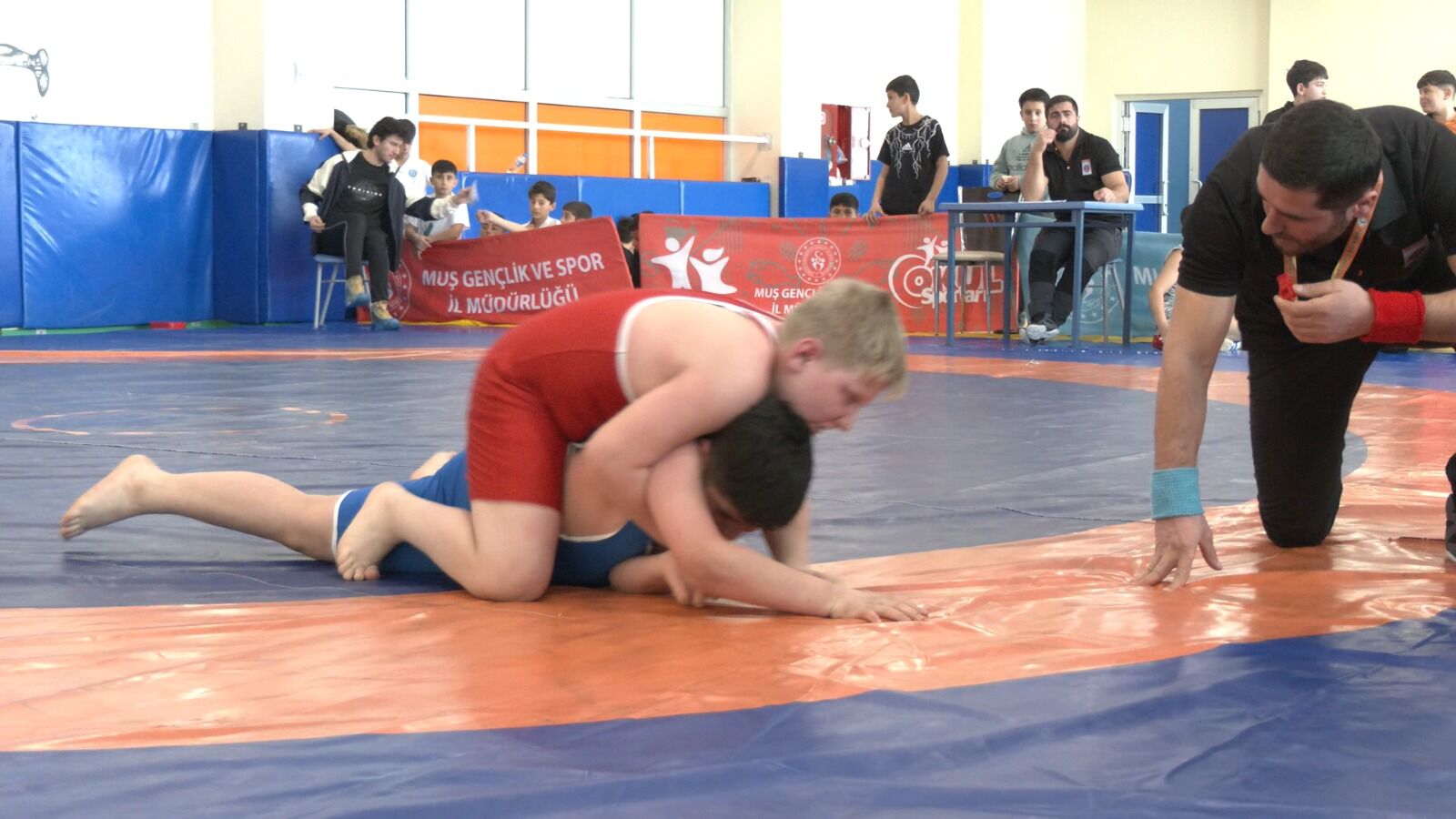 Muş Yeni Spor Salonu’ndaki Güreş Salonu’nda düzenlenen Küçükler Güreş İl birinciliği müsabakalarında iki grup şeklinde 250 sporcu mücadele edecek.