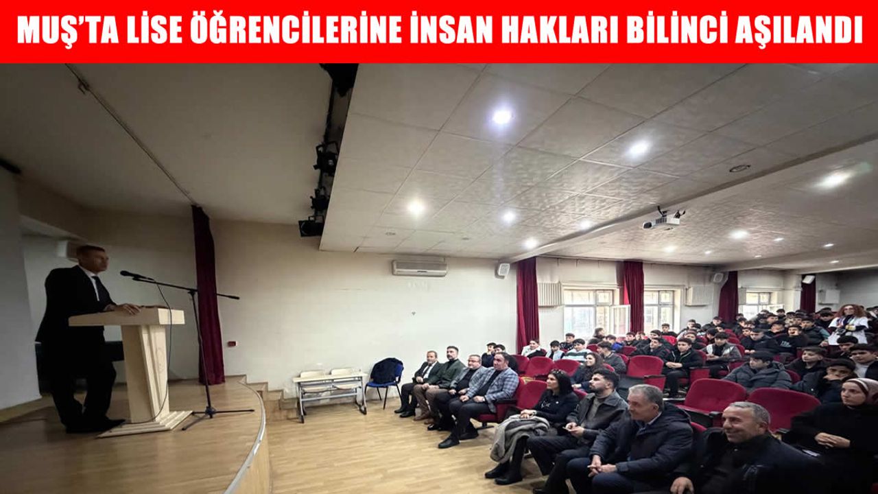 HABER49-Muş’ta 10 Aralık Dünya İnsan Hakları Günü dolayısıyla lise öğrencilerine yönelik bilgilendirme semineri düzenlendi. Muş İl İnsan Hakları Kurulu tarafından Muş Mesleki ve Teknik Anadolu Lisesi konferans salonunda gerçekleştirilen programda, insan haklarının kapsamı, evrensel nitelikleri ve gençlerin bu konuda sahip olması gereken temel bilinç aktarıldı.