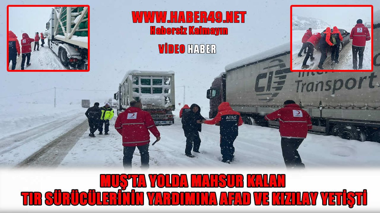 HABER49- Muş Kızılay Afet Müdahale Merkezi ve Afet ve Acil Durum (AFAD) İl Müdürlüğü ekipleri, Muş-Bingöl kara yolunun kardan kapanması nedeniyle yolda mahsur kalan TIR sürücülerine yemek ve içecek ikram etti.