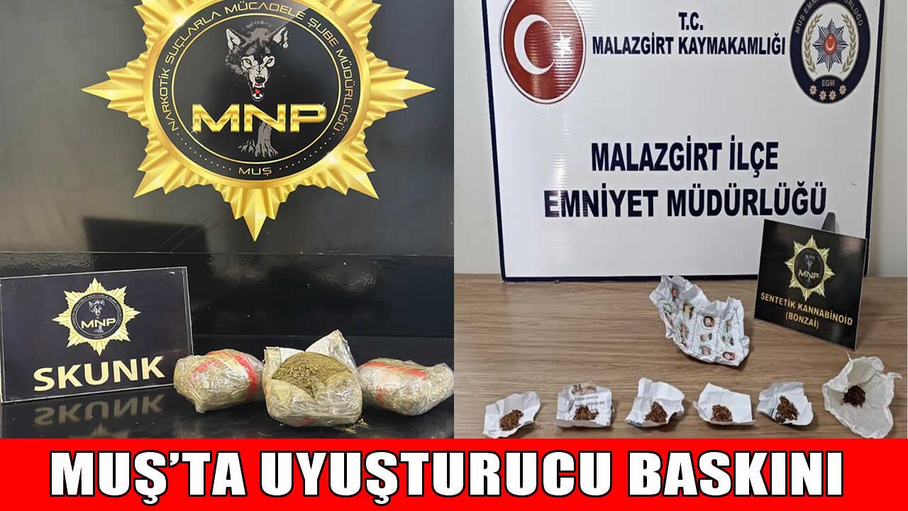 Öte yandan Malazgirt İlçe Emniyet Müdürlüğü ekiplerince gerçekleştirilen çalışmalarda, metruk bir binada yapılan kontrollerde 6 fişek halinde toplam 18,71 gram bonzai ele geçirildi. Olayla ilgili bir şüpheli gözaltına alınarak hakkında adli tahkikat başlatıldı.