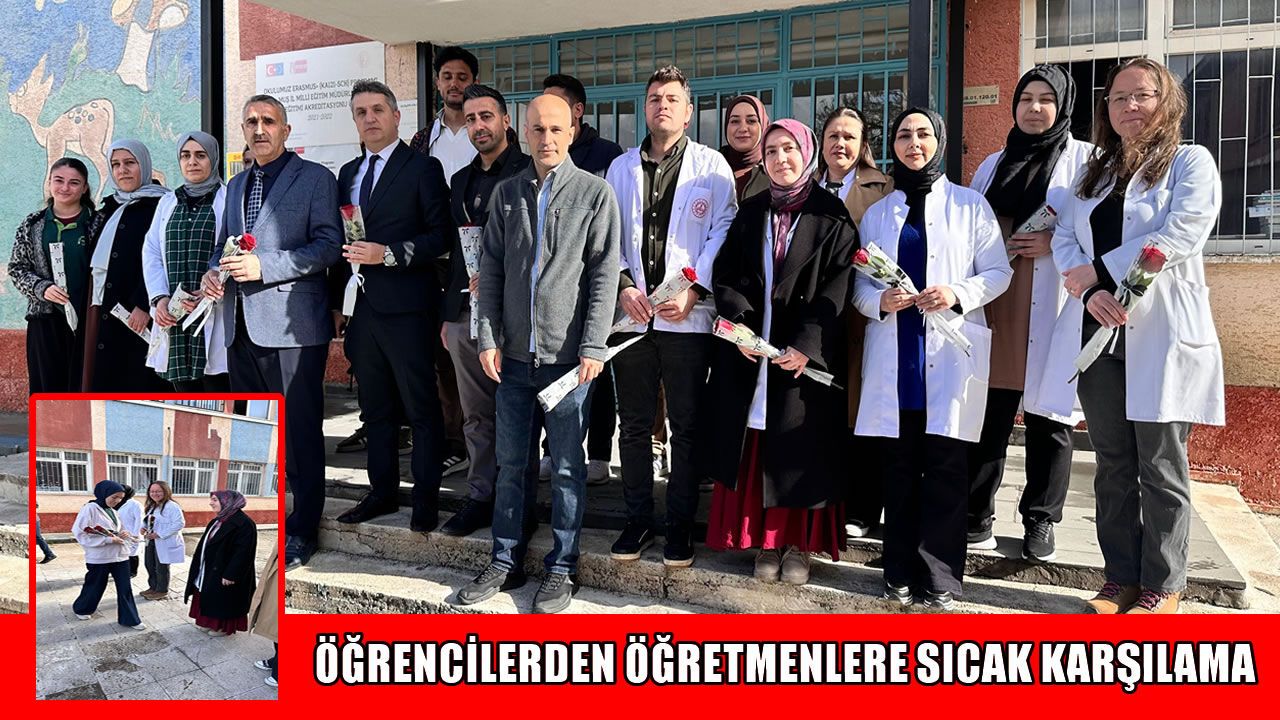 Öğretmenlerine tek tek gül takdim eden öğrencilerin duyarlı davranışını takdir eden öğretmenler, ardından sınıflarına geçerek derslerine başladı.