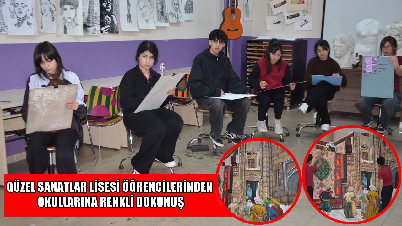 Şehit Yücel Kurtoğlu Güzel Sanatlar Lisesi’nde eğitim alan 9, 10 ve 11. sınıf resim bölümü öğrencileri, öğretmenlerinin rehberliğinde yürüttükleri çalışmalarla okulun iç ve dış mekanlarını sanatsal figürlerle donatıyor.