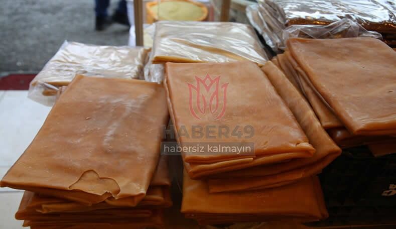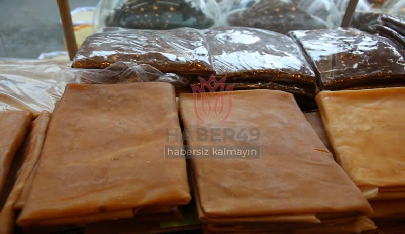 Çayın yanında halk tarafından çokça tüketilen pestil ve cevizli sucuk, Muş Eski Hal’de tezgahları süsledi. Eski Hal’de üç yıldır kuruyemiş işletmeciliği yapan Rahmetullah Işık, pestil ve cevizli sucuğun satışının rağbet gördüğünü söyleyerek www.haber49.net’te konuştu.