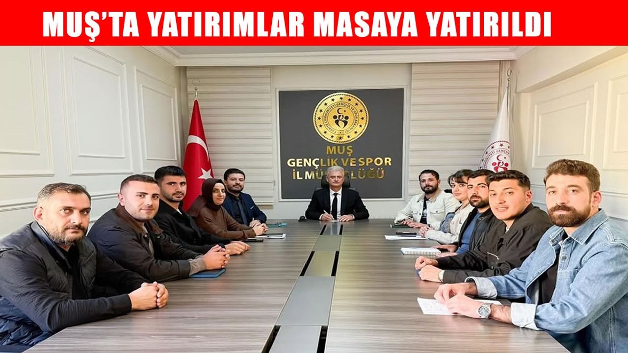Muş Gençlik ve Spor İl Müdürü Yusuf Kılıç başkanlığında gerçekleşen toplantıya Yatırım, İnşaat ve İşletmeler Birimi Şube Müdürü, mühendisler ve ilgili personel katıldı.