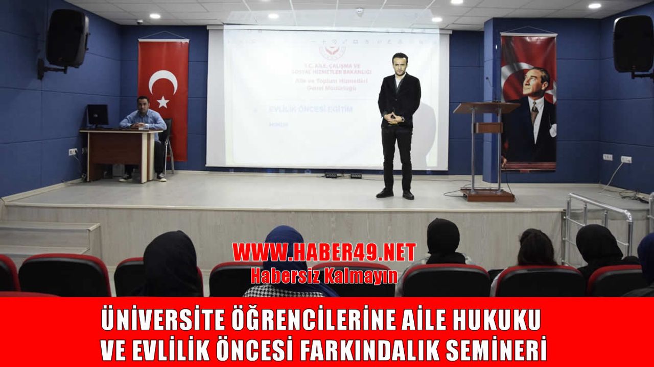 Muş Alparslan Üniversitesi Sosyal Hizmetler Bölümü öğrencilerine yönelik gerçekleştirilen Aile Eğitim Programı kapsamında, “Aile Hukuku ve Evlilik Öncesi Eğitimi” semineri büyük ilgi gördü. Programda, öğrenciler aile hukuku ile ilgili temel bilgiler edinirken, evlilik öncesi süreçlerde karşılaşılabilecek hukuki ve sosyal sorunlar hakkında detaylı bilgi sahibi oldu. Katılımcılar, eğitim sırasında hem teorik hem de uygulamalı içeriklerle bilgilendirildi.