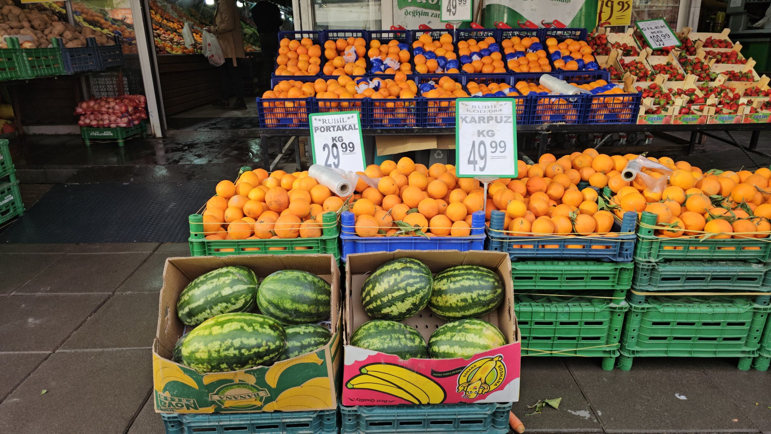 “Bu senenin karpuzudur. İran’dan geldi, içi kanlıdır. Mevsimi değil ama çok güzeldir. Karpuzun çekirdeği siyah, tadı çok güzeldir.”