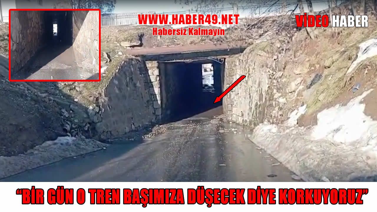 Belediyeye ve yetkililere seslenen mahalle sakinleri, yapısal tehlikeye dikkat çekerek, "Muş'un merkezinde, başımızın üstünden tonlarca ağırlıkta tren geçiyor ama altımızdaki yol su içinde. Duvarlar rutubetten çürüdü, betonlar dökülüyor. Bir gün o tren başımıza düşecek diye korkuyoruz. Üstteki rayların sağlamlığı, alttaki bu çürümeyle ne kadar korunabilir?" dedi.