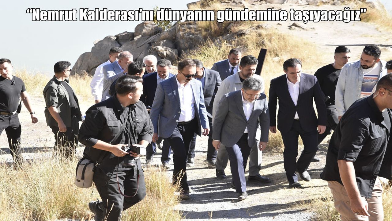 Bakan Yumaklı Nemrut’un muhteşem doğaya ve biyoçeşitliliğe sahip olduğunu ifade ederek, "İnşallah, sadece yurt içinden değil, yurt dışından da çok ciddi bir ziyaretçi kitlesinin buraya geleceğini düşünüyoruz. Bu manada, etrafınızda da gördüğünüz gibi, sonbaharın bütün renklerini taşıyan bir bitki örtüsü var. Yine içerisinde keşfedilmiş ya da henüz keşfedilmemiş hayvan türleri mevcut. Muhtemelen bunların hepsiyle ilgili, üniversitelerle birlikte yapılacak olan çalışmalar gündeme gelecek. Dağ sporları, kış sporları açısından da hak ettiği yere geleceğini düşünüyorum. Bu kalderanın hem içi hem dışı bütün bunlara müsait. İnşallah, Doğa Koruma ve Milli Parklar statü değişikliğinden sonra, buranın koruma-kullanma dengesini gözeterek, turizmin hizmetine sunulmasını, insanların gözünün ve gönlünün açılacağı bu güzellikleri görmesini sağlayacak ortamın hazırlanmasını arkadaşlarımız sağlayacaklar. Hâlihazırda buraya yakın mesafede bir kayak tesisi olarak düzenlenmiş bir alan var. Ancak turizm olayı daha farklı bir konu. Bu kalderanın, özellikle biyoçeşitliliğin ne anlama geldiği, bu güzelliklerin fark edilmesi, izlenmesi ve insanlarımız tarafından gözlemlenmesinin ne ifade edeceği tarafındayım. Doğal olarak ziyaretin olduğu yerde turizm de gelişiyor" şeklinde konuştu.
