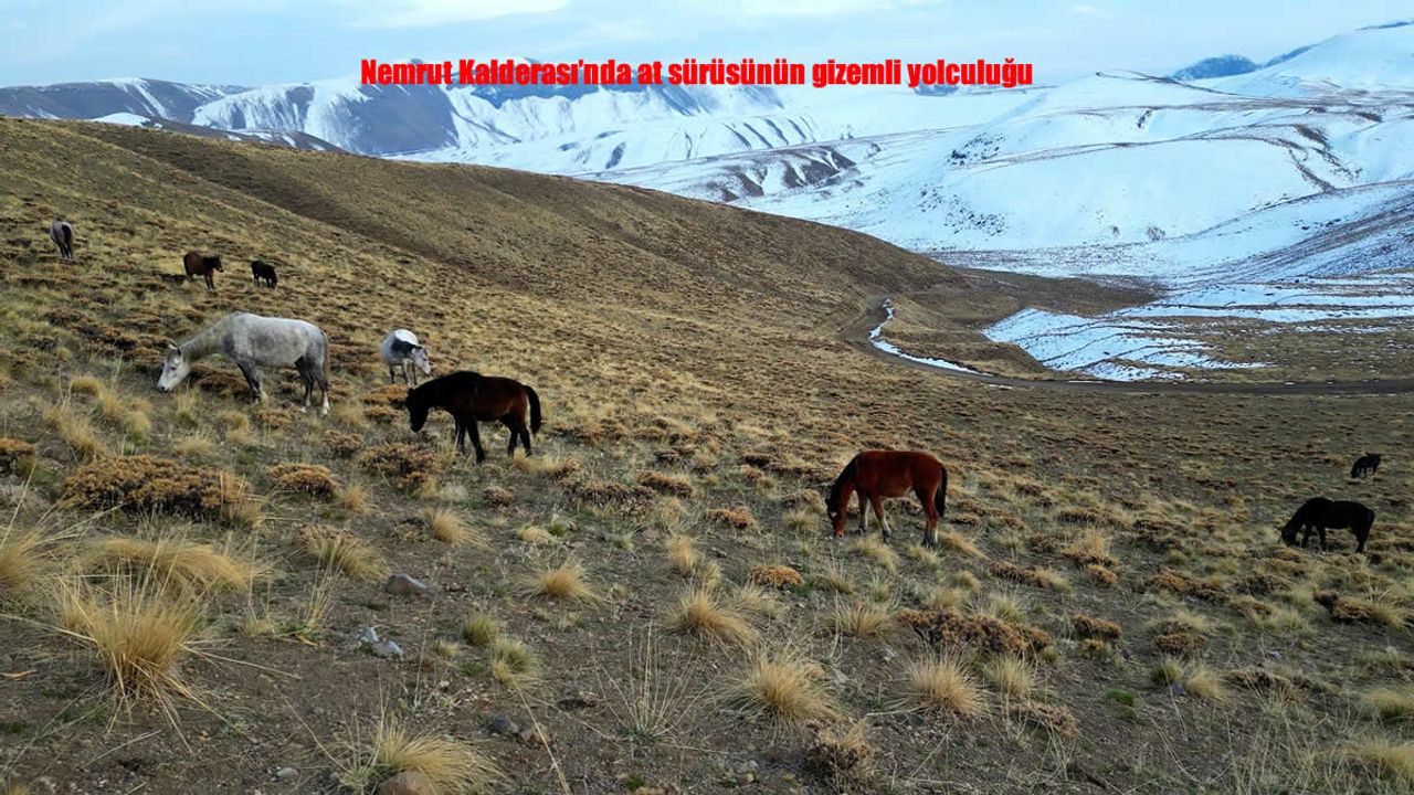 HABER49- Bitlis’in Ahlat, Güroymak ve Tatvan ilçeleri sınırında yer alan Nemrut Kalderası, eşsiz manzarasının yanı sıra sürüler hâlinde gezen atlarıyla da ziyaretçilerin ilgisini çekiyor.