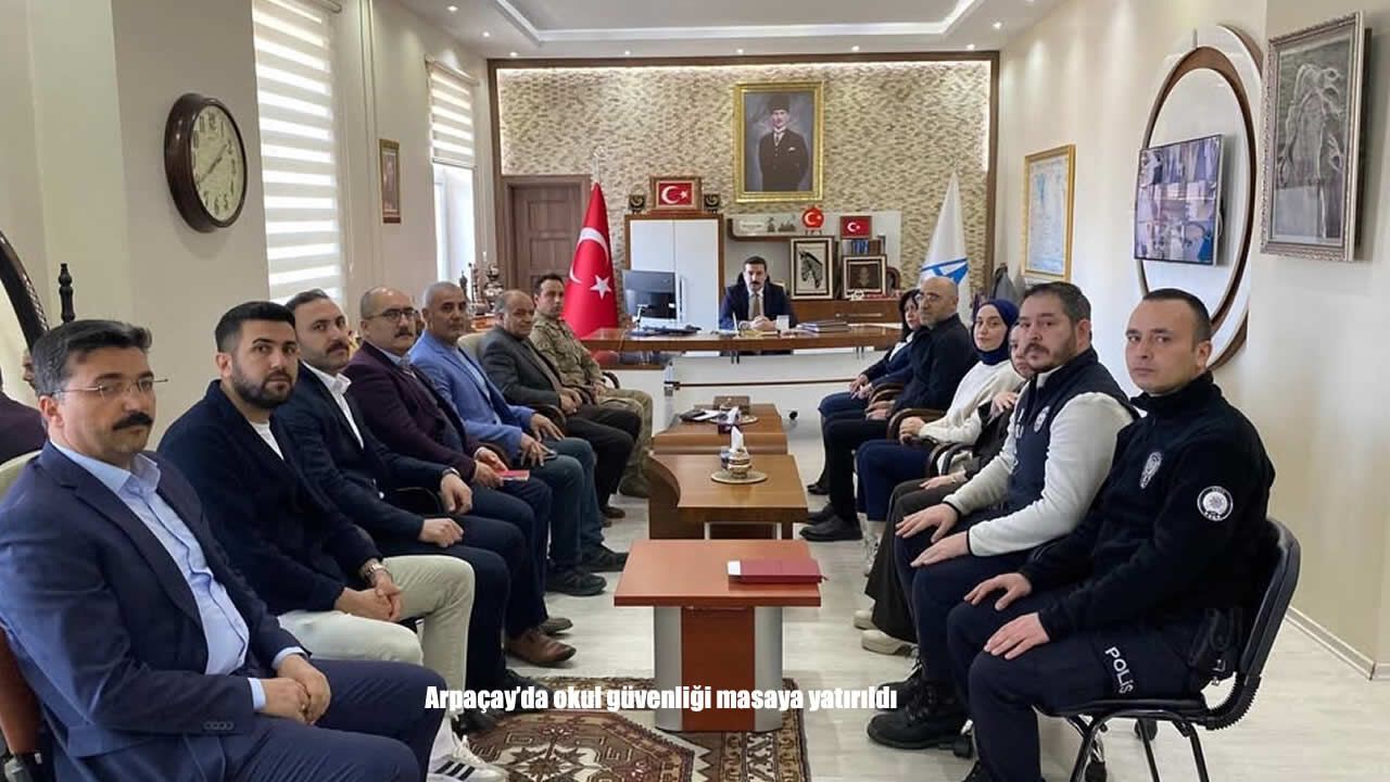 HABER49- Arpaçay Kaymakamı Muhammed Burak Akköz başkanlığında, ilçede eğitim ortamlarının daha güvenli hale getirilmesi amacıyla okul güvenliği toplantısı gerçekleştirildi. Toplantıya İlçe Jandarma Komutanlığı, İlçe Emniyet Amirliği personelleri, İlçe Milli Eğitim Müdürlüğü yetkilileri ile okul müdürleri katıldı.