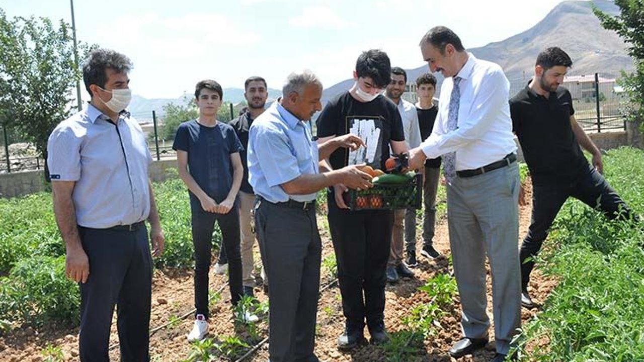 uğunu anımsatarak; “Bugün Muş merkez Selahattin Eyyubi Anadolu İmam Hatip Lisesi Fen Sosyal Bilimler Proje okulumuzun bahçesindeyiz. Okulumuzdaki yönetici ve öğretmen arkadaşlarımız öğrencileri sadece akademik bilgilerle donatmayıp, aynı zamanda bilmeyi yapabilme dönüştürme çabası içerisinde görmüş olduğunuz bu alanda aynı zamanda çocukların günlük yaşam alanlarına sirayet edecek şekilde birde beceri eğitimini gerçekleştirmiş durumdadırlar. Malumunuz ilimiz aynı zamanda bir tarım kentidir. Burada da bahçe bitikleri ve yetiştirebileceğimiz bostan domates, salatalık, biber, fasulye, soğan ve patates bunlara benzer ürünlerimizin tamamını öğrencilerimiz buraya ekerek, buradan da okulumuzun çevresinde bulunan ihtiyaç sahibi olan ailelere dağıtılmak üzere yetiştirmiş bulunmaktadırlar. Burada toplanan ürünler okulumuz çevresindeki ihtiyacı olan ailelere dağıtılmak üzere yetiştiriliyor. Bu bizleri son derece mutlu etmekte” dedi.