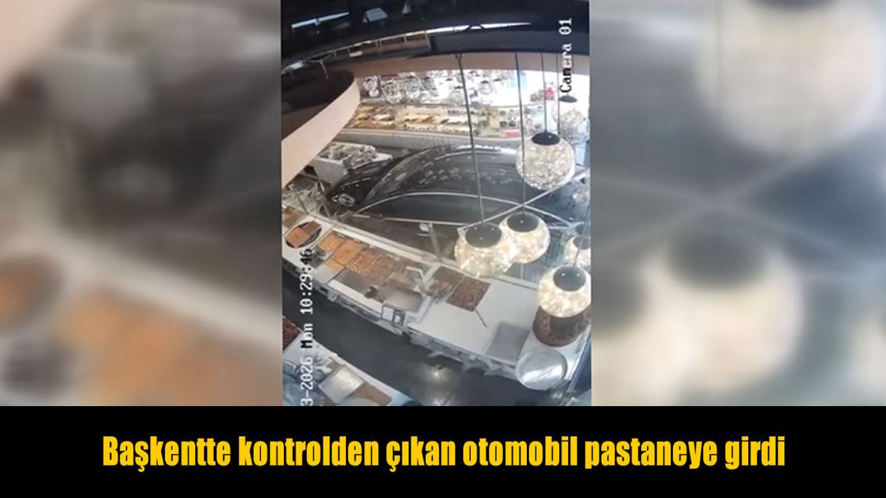 Kaza anı, iş yerinin güvenlik kamerasınca kaydedildi. Görüntülerde, hızla gelen otomobilin pastaneye girmesi, reyonlara çarparak durması ve dükkandan çıkması yer aldı.