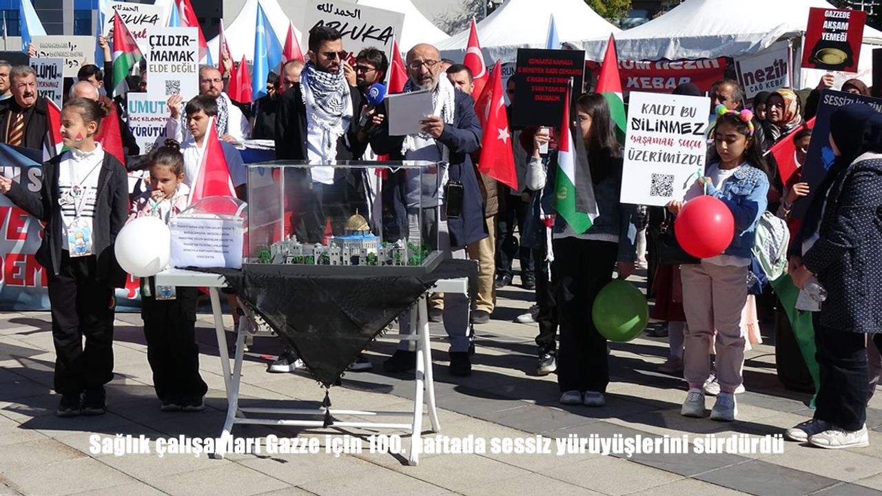 HABER49-Havuzbaşı kent meydanında toplanan aralarında Tıp Fakültesi öğrencilerinin de bulunduğu sağlık çalışanları basın açıklaması yaptı. Yakutiye Medresesi önünde grup adına açıklama yapan Prof. Dr. Naci Ceviz, "Bugün burada Filistin'de yaşanan zulme karşı tepkisini göstermeye çalışan gönüllüler olarak 100. kez toplandık. 100 haftadır Allah'ın izniyle bayram seyran, yaz kış, yağmur çamur demeden, bir hafta sonu bile boşluk bırakmadan 'Benimle kim var?' diye sağımızı solumuzu kontrol etmeden, 'Ben varım, Allah'ım' diye öne atılarak zulmün karşısında yerimizi aldık. 'Çocuklar parça parça doğranırken napıyordun?' sorusuna belki verilecek az da olsa cevabımız olur diye uğraşıyoruz" dedi.