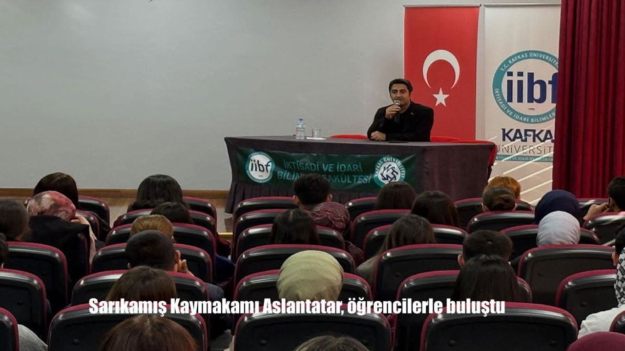 Sarıkamış Meslek Yüksekokulu’nda düzenlenen söyleşide öğrencilere hitap eden Kaymakam Aslantatar, Kafkas Üniversitesi İktisadi ve İdari Bilimler Fakültesi Siyaset Bilimi ve Kamu Yönetimi bölümü Kariyer Yönetimi dersi kapsamında öğrencilerle bir araya geldi.