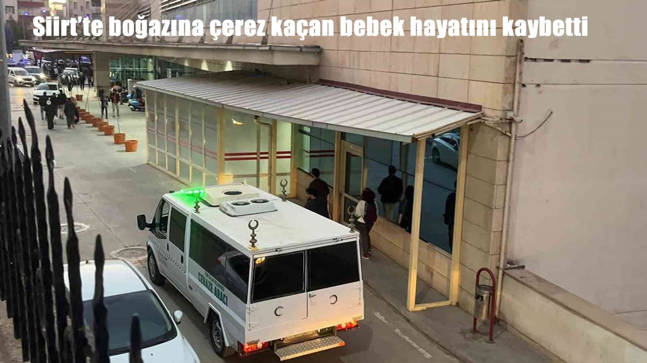 Edinilen bilgilere göre, Şirvan ilçesinde 1, 5 yaşındaki A.D.’nin boğazına çerez kabuğu kaçtı. İhbar üzerine olay yerine sağlık ekibi sevk edildi. A.D., sevk edildiği Siirt Eğitim ve Araştırma Hastanesinde tüm müdahalelere rağmen kurtarılamadı.