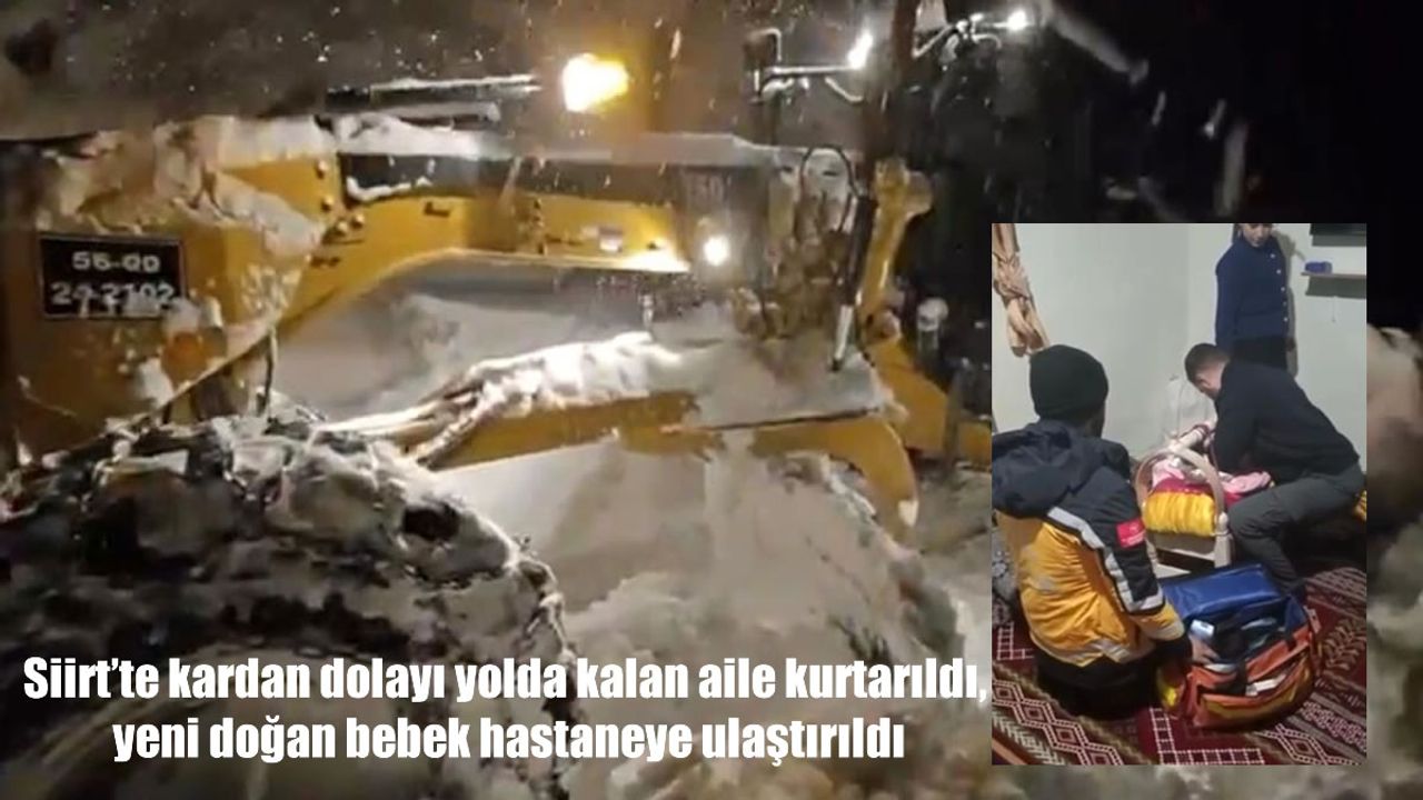Öte yandan Pervari ilçesi Düğüncüler köyünde, yüksek ateş şikayeti bulunan yeni doğan bebek Ronayi Erten için de ekipler harekete geçti. Kar nedeniyle ulaşımın aksadığı güzergahta yol açma çalışması yapan ekipler, yaklaşık 4 saat sonra bebeği sağlık ekiplerine ulaştırdı.