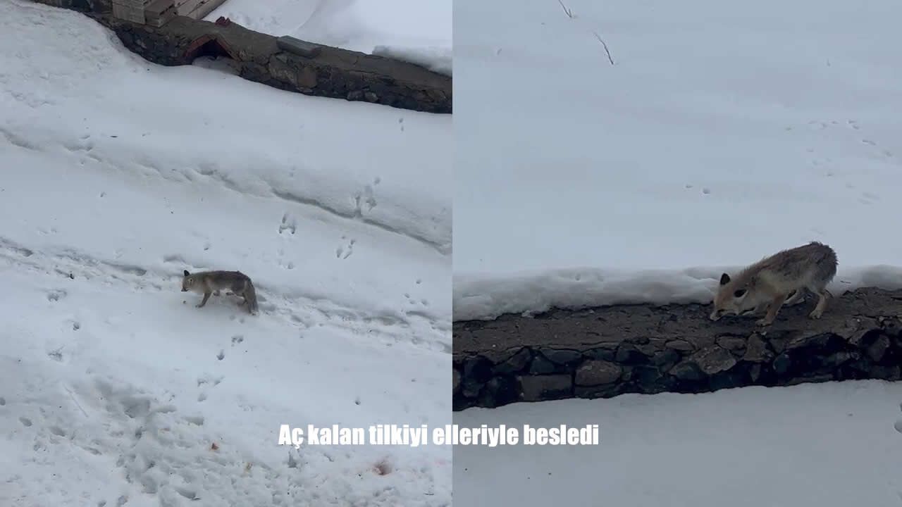 HABER49- Erzurum'un Karayazı ilçesinde aç kalan bir tilki, yiyecek bulmak için bir evin bahçesine girdi. Ev sahibi tilkiyi elleriyle besledi.