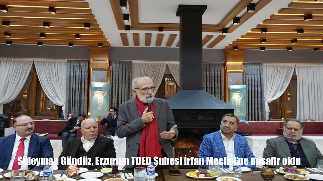 Türkiye Dil ve Edebiyat Derneği Erzurum Şube Başkanı Murat Ertaş, "TDED İrfan Meclisi'ne katkılarından dolayı EBB Başkanımız Sayın Mehmet Sekmen'e, EBB Kültür Daire Başkanımız Sayın Ergün Engin'e, davetimize icap eden Süleyman Gündüz abimize ve programa iştirak eden herkese şükranlarımızı sunuyoruz" dedi.