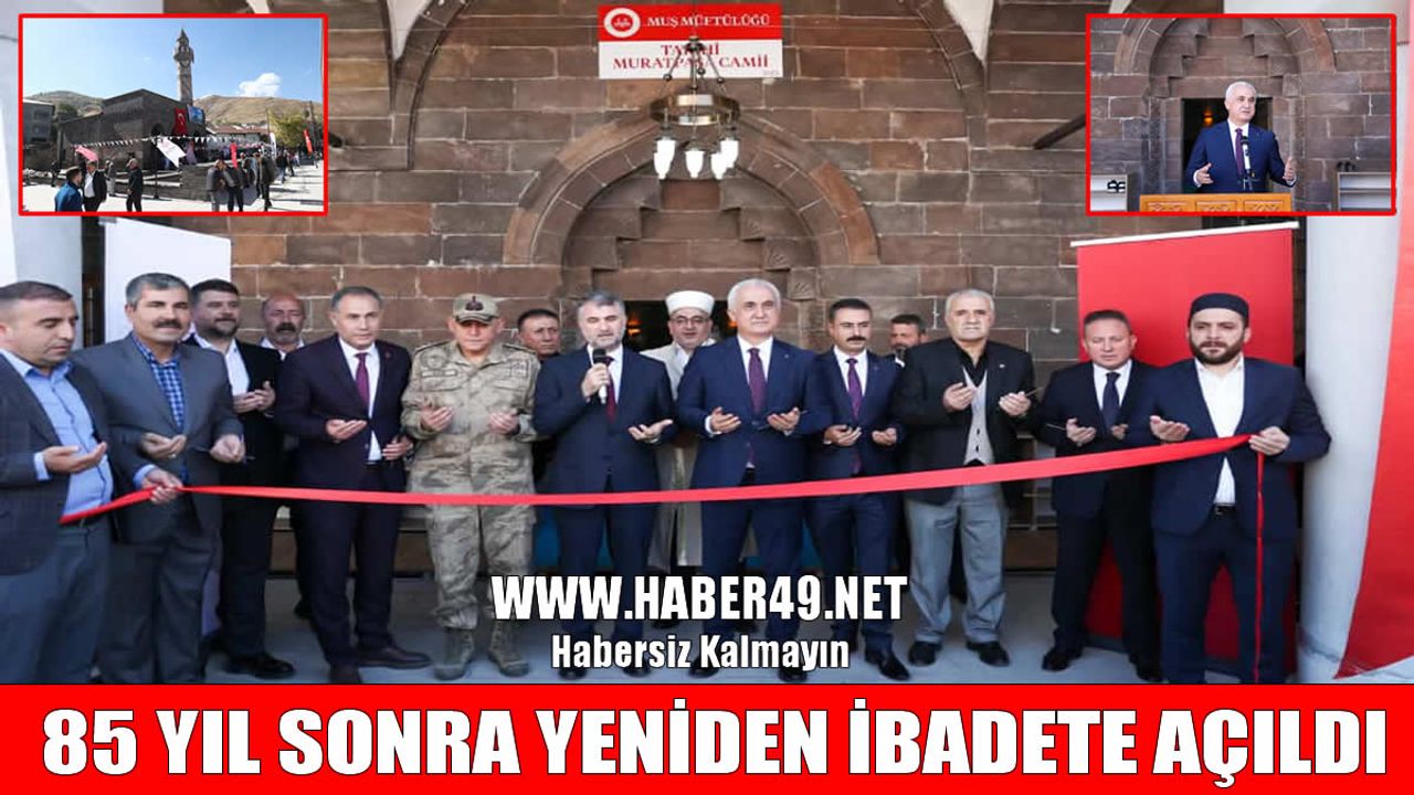 HABER49- Muş’ta restorasyonu tamamlanan Tarihi Murat Paşa Camisi, düzenlenen törenle 85 yıl sonra yeniden ibadete açıldı.