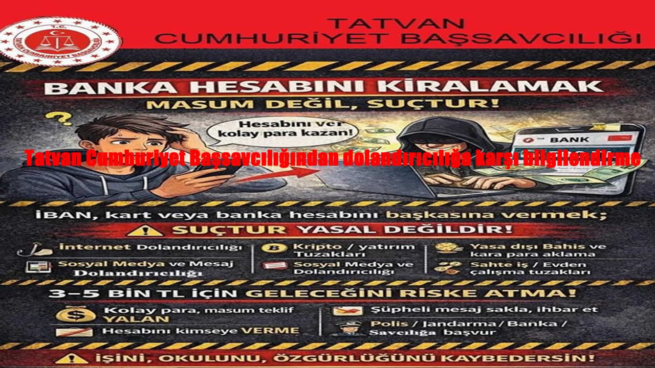 Başsavcılık tarafından hazırlanan "Bilgilendirme Rehberi" ile özellikle gençlerin “zahmetsiz kazanç” vaatleriyle banka hesaplarını kiralamaya yönlendirildiğine dikkat çekildi. Rehberde, “hesabını ver, komisyonunu al” tekliflerinin organize suç zincirine dahil olabileceği ve ağır cezai yaptırımlar doğurabileceği vurgulandı.