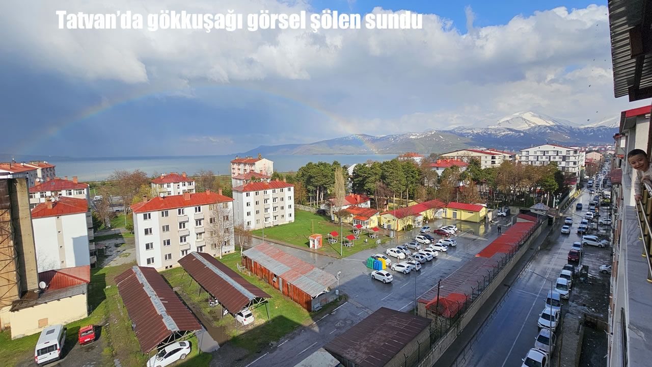 HABER49- Tatvan’da gün içerisinde etkisini sürdüren yağmur, yerini kısa süreli güneşli havaya bırakınca doğa adeta renk cümbüşüne sahne oldu. Yağışın ardından oluşan gökkuşağı, özellikle Van Gölü’nün üzerinde belirgin şekilde görülürken, Tatvan ilçe merkezinden de net bir şekilde izlenebildi. Göl yüzeyine yansıyan gökkuşağı eşsiz görüntüler ortaya çıkarırken, manzarayı gören vatandaşlar ise cep telefonlarına sarılarak bu anları ölümsüzleştirdi. Şehrin birçok noktasında gökyüzünü süsleyen renkler, kısa sürede ilgi odağı oldu.
