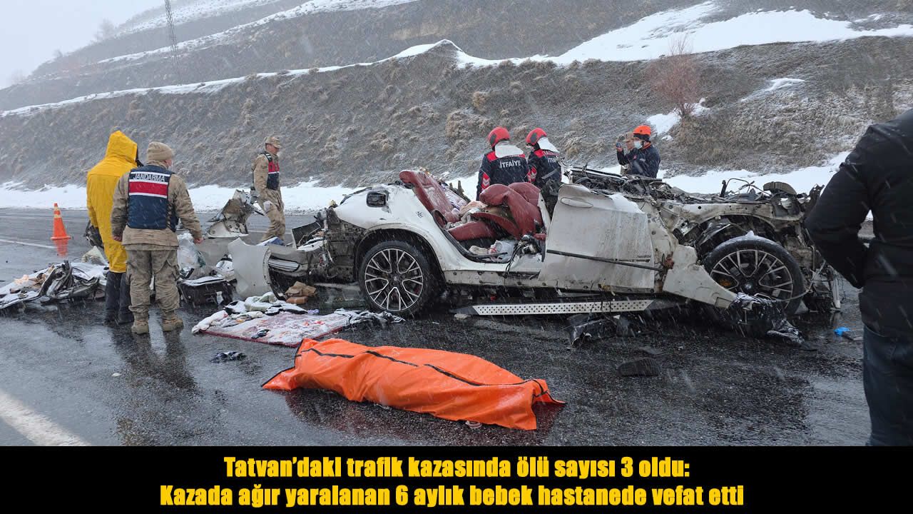 Tatvan-Van karayolu üzerinde bulunan Alacabük Köyü mevkiinde tır ile otomobilin karıştığı kazada ağır yaralanan 6 aylık F.A., kaldırıldığı hastanede yapılan tüm müdahalelere rağmen kurtarılamayarak hayatını kaybetti.