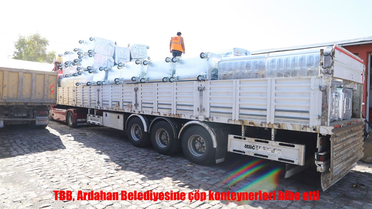 Türkiye Belediyeler Birliği (TBB), Ardahan Belediyesine temizlik işlerinde kullanılmak üzere 100 adet hibe çöp konteynerleri gönderdi. Belediye Kademe Hizmet Binasına tırdan boşaltılarak yerleştirilen yeni konteynerler, şehrin tüm noktalarına dağıtılacak.