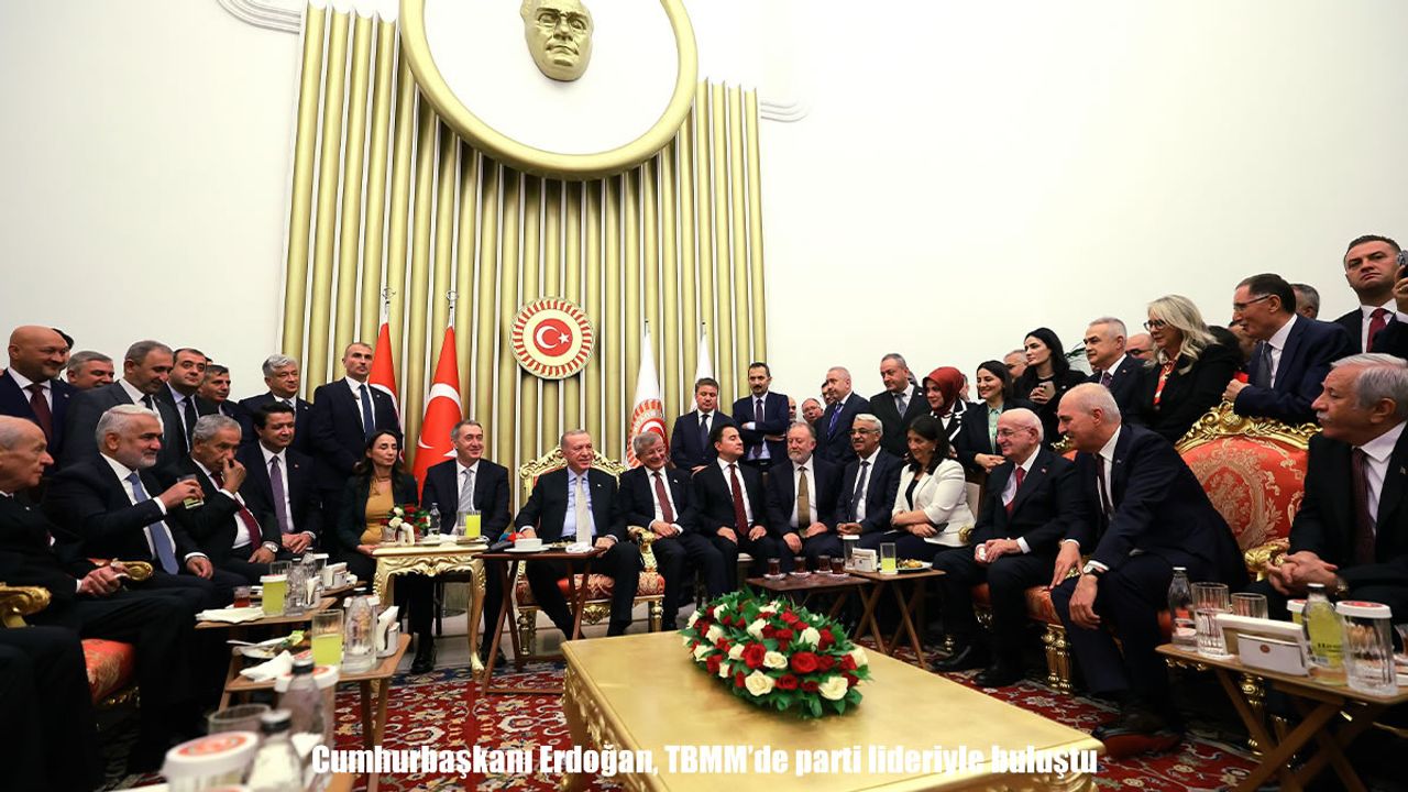 TBMM Başkanı Numan Kurtulmuş ev sahipliğinde TBMM’de yasama yılı açılışı dolayısıyla resepsiyon düzenlendi. Resepsiyonda mermerli salonda liderler zirvesi düzenlendi. Zirveye Cumhurbaşkanı Erdoğan, TBMM Başkanı Numan Kurtulmuş, MHP Genel Başkanı Devlet Bahçeli, TBMM Başkanvekili Celal Adan, DEM Parti Eş Genel Başkanları Tülay Hatımoğulları ve Tuncer Bakırhan, TBMM Başkanvekili Pervin Buldan, DEM Parti İmralı heyeti üyesi Grup Başkanı Mithat Sancar, DEVA Genel Başkanı Ali Babacan, Gelecek Partisi Genel Başkanı Ahmet Davutoğlu, Saadet Partisi Genel Başkanı Mahmut Aslan, HÜDAPAR Genel Başkanı Zekeriya Yapıcıoğlu, eski TBMM başkanları katıldı.