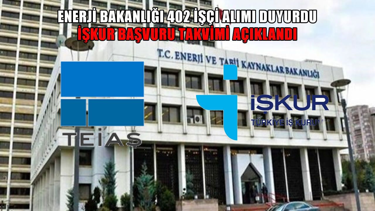 HABER49- Enerji ve Tabii Kaynaklar Bakanlığı, TEİAŞ bünyesinde 402 personel alımı yapılacağını duyurdu. Başvurular 13-17 Nisan 2026 tarihleri arasında İŞKUR üzerinden alınacak.