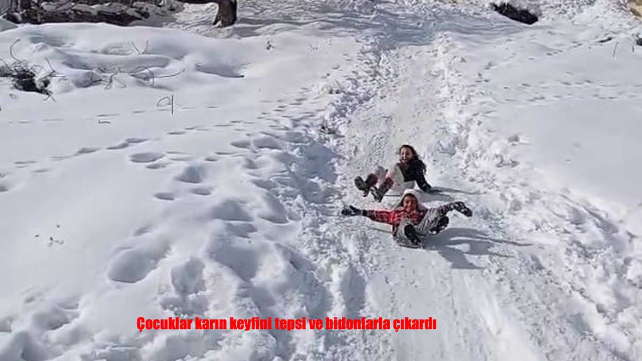 Soğuk havaya aldırış etmeyen çocuklar, tepsi ve bidon gibi buldukları malzemeleri kızak yerine kullanarak yamaçlardan kaydı. Renkli ve neşeli anların yaşandığı mahallede çocukların mutluluğu kameralara yansıdı.