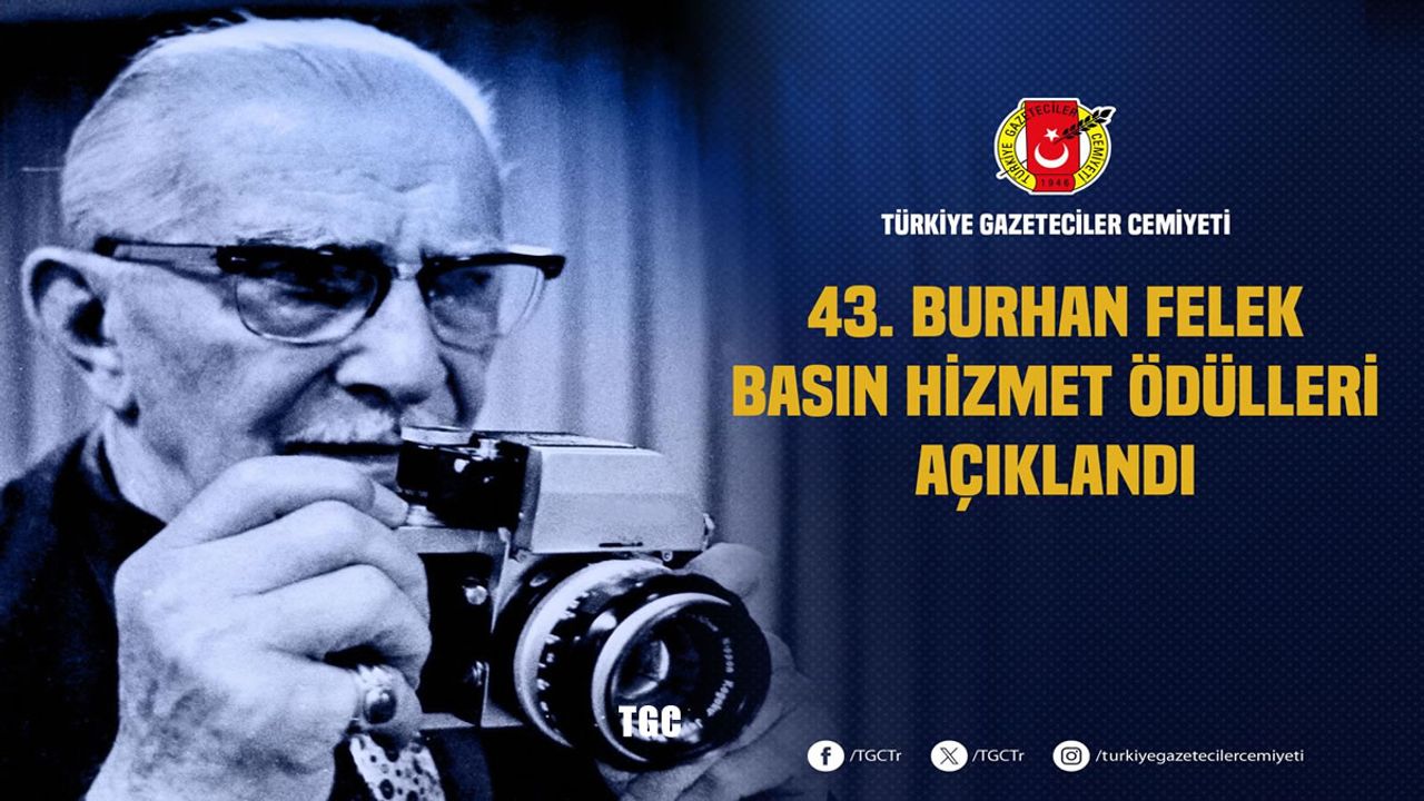 HABER49-Türk Basınının önde gelen kalemlerinden ve Türkiye Gazeteciler Cemiyeti (TGC) önceki başkanlarından Şeyhül Muharririn Burhan Felek adına konulan Burhan Felek Basın Hizmet Ödülleri açıklandı. TGC Burhan Felek Basın Hizmet Ödülleri Seçici Kurulu 2 Ekim 2025 Perşembe günü Türkiye Gazeteciler Cemiyeti’nde toplandı.