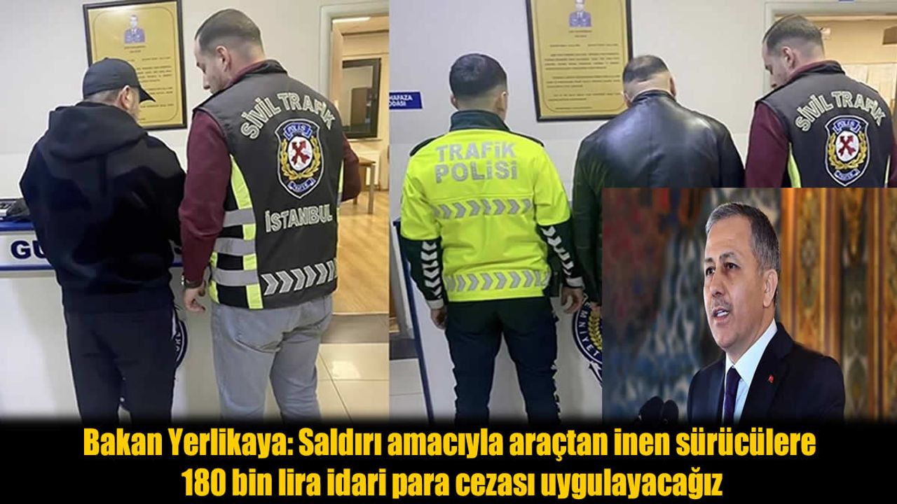 HABER49- İçişleri Bakanı Yerlikaya, "İlk kez yeni Trafik Kanunu teklifine girecek maddeye göre, saldırı amacıyla araçtan inen ve yol kapatan sürücülere 180 bin lira idari para cezası uygulayacağız, sürücü belgesini 60 gün süreyle geri alacağız." dedi.