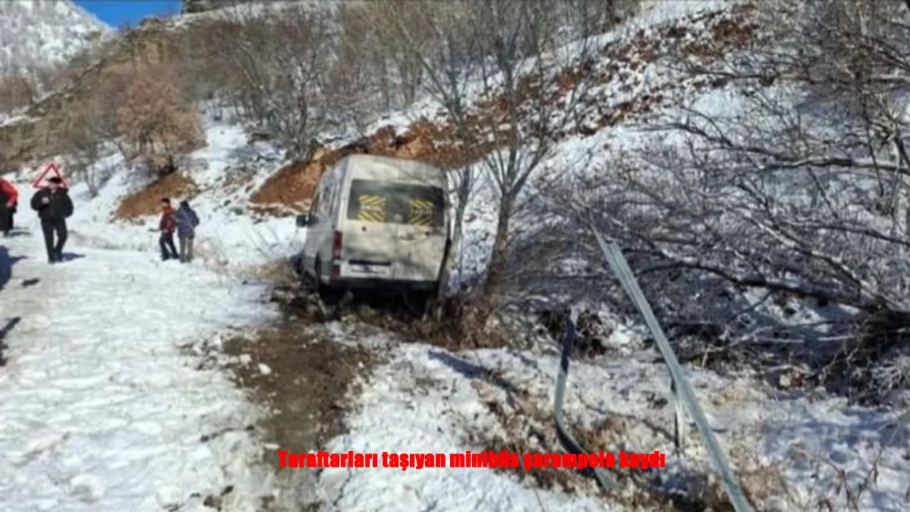 HABER49- Seza Çimento Elazığspor’un Anagold 24 Erzincanspor ile oynayacağı deplasman maçı için yola çıkan taraftarları taşıyan minibüs, Tunceli Pülümür yolunda kar ve buzlanma nedeniyle şarampole kaydı. Kazada yaralanan olmazken, büyük bir facia ucuz atlatıldı.