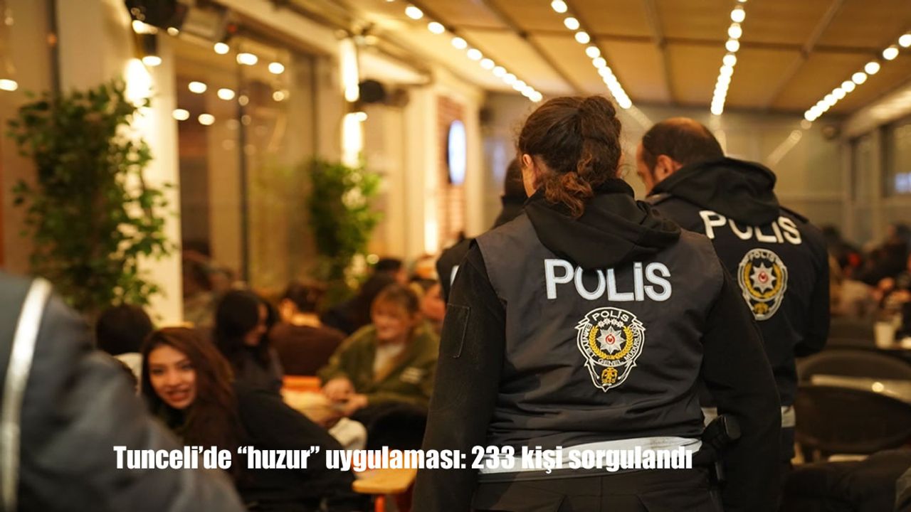 HABER49-Tunceli İl Emniyet Müdürlüğü Asayiş Şube Müdürlüğü ekipleri tarafından "Tunceli'nin Huzuru" uygulamaları kapsamında 20 Aralık 2025 günü saat 21.00 ile 22.30 arasında yapılan denetimlerde, risk analizi esas alınarak vatandaşların yoğun olarak bulunduğu alanlar kontrol altına alındı. Alkol satışı yapılan işletmeler, eğlence ve etkinlik düzenlenen mekânlar, mevzuata aykırı işletme ve işçi çalıştırdığı değerlendirilen umuma açık iş yerleri ile park, bahçe ve mesire alanlarında denetimler yapıldı. 12 ekip ve 43 personelin katılımıyla gerçekleştirilen uygulamada toplam 233 şahsın Genel Bilgi Toplama (GBT) sorgusu yapıldı. Denetimler sırasında yoklama kaçağı (bakaya) olduğu tespit edilen 1 şahıs hakkında gerekli tebliğ tutanağı düzenlenirken, işletme ve çalışma ruhsatı bulunmadığı belirlenen 1 iş yeri hakkında da tutanak tutuldu.
