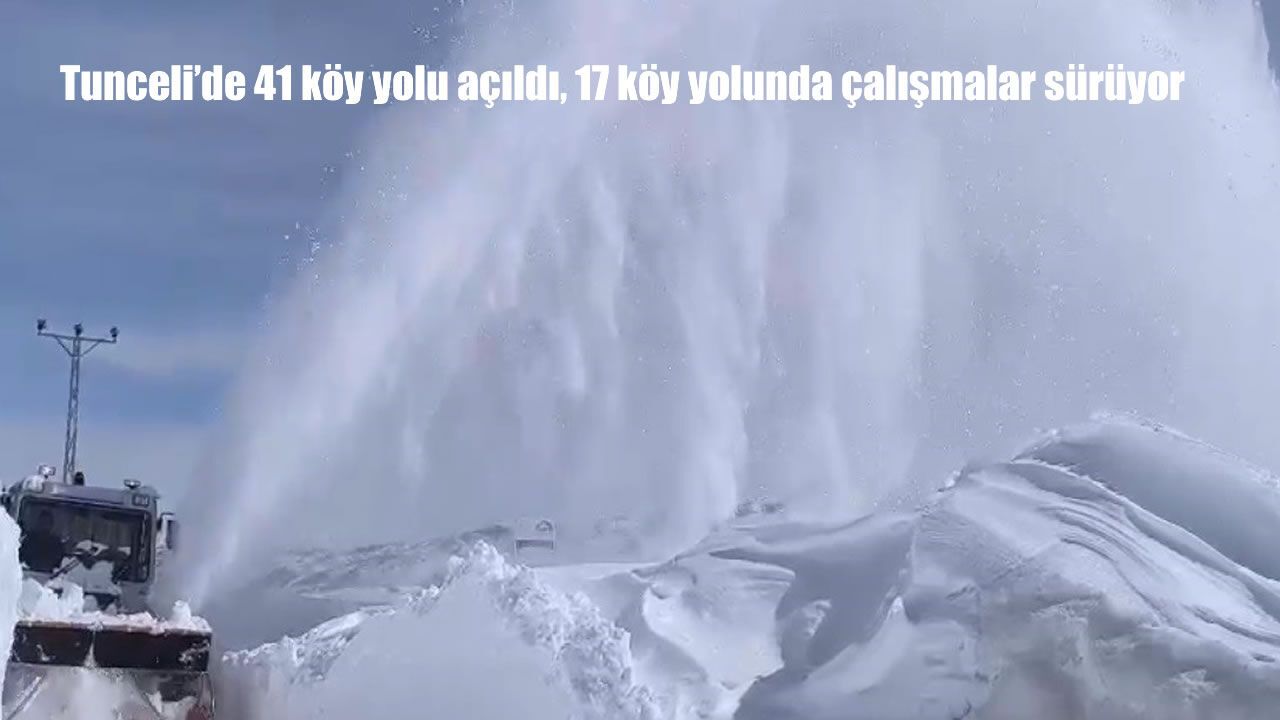 HABER49- Meteorolojinin uyarı yaptığı Tunceli'nin ilçeleri ve yüksek kesimlerinde kar yağışı etkili oldu. Yağışla birlikte 58 köy yolu ulaşıma kapandı. Tunceli Valiliği koordinesinde İl Özel İdaresi ve karayolları ekiplerinin yoğun çalışmasıyla 41 köy yolunda ulaşım yeniden sağlanırken 17 köy yolunda ise çalışmalar sürüyor.
