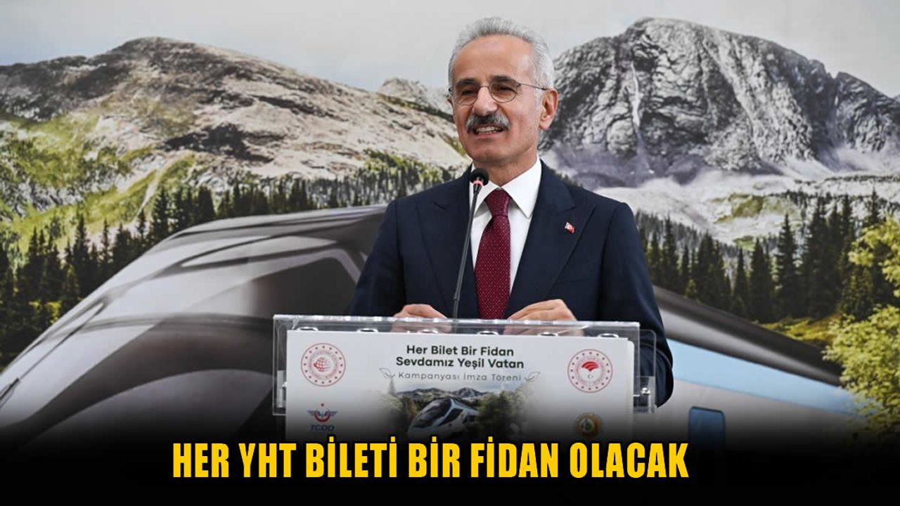 HABER49- Ulaştırma ve Altyapı Bakanlığı ile Tarım ve Orman Bakanlığı arasında “Her Bilet Bir Fidan Sevdamız Yeşil Vatan Kampanyası” için imzalar atıldı. Bakan Uraloğlu, “1 yıl boyunca yüksek hızlı trenlerimizle seyahat eden her yolcumuz adına bir fidan dikeceğiz. Bu hatlarımızın genelinde yıllık ortalama 13 milyon yolcumuzun seyahat ettiğini düşündüğümüzde 13 milyon fidanı toprakla buluşturacağız” dedi.
