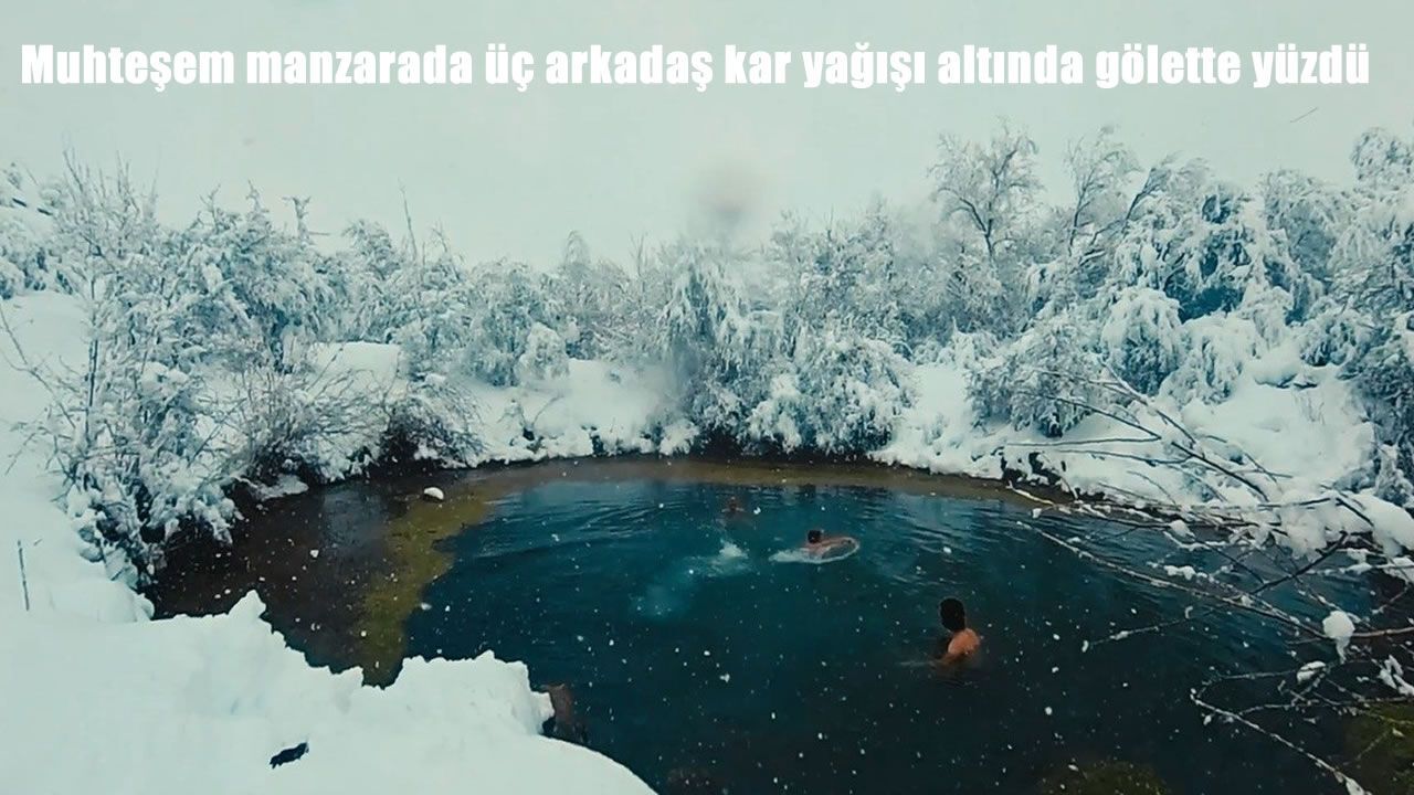 Soğuğa aldırış etmeyen Zafer Küçüksu, Cengiz Urtekin ve Emrah Karakoç, hazırlıklarını yaptıktan sonra gölete girerek yüzdü. Su yüzeyinde yer yer buz tabakalarının oluştuğu görülen gölette yüzen üç arkadaş, kısa süreli yüzmenin ardından sudan çıktı. Gerçekleşen yüzme etkinliği, drone kamerasıyla kayda alınarak göletin karla kaplı eşsiz manzarası gözler önüne serildi.