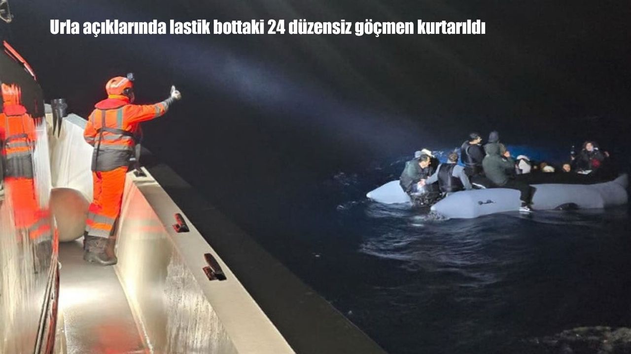 HABER49- Olay, 18 Ocak saat 03.00 sıralarında Urla ilçesi açıklarında meydana geldi. Edinilen bilgiye göre, içerisinde düzensiz göçmenlerin bulunduğu lastik botun motor arızası nedeniyle sürüklendiği ve yardım talebinde bulunulduğu bilgisi üzerine bölgeye Sahil Güvenlik Gemisi (TCSG-311) ile Sahil Güvenlik Botları (TCSG-912, TCSG-909) sevk edildi. Ekiplerce lastik bottaki 12’si çocuk toplam 24 düzensiz göçmen kurtarıldı.