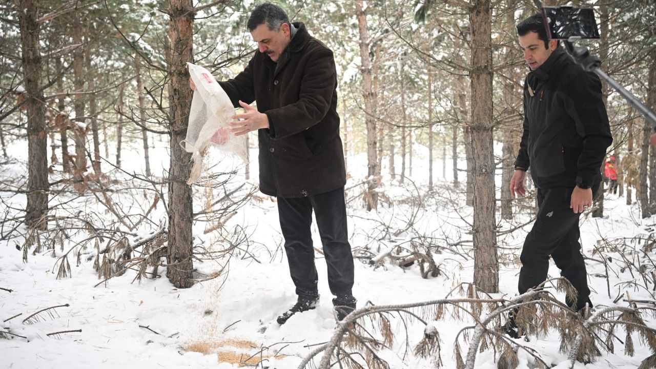 "Bugün Valiliğimizin düzenlediği etkinlik vesilesiyle Erzurum Macera Off-Road Doğa Sporları Kulübümüzle beraber Erzurum'un doğal güzelliklerini tanıtmak ve yaban hayvanlarına destek olmak amacıyla Köşk Göleti'ndeyiz. Köşk Göleti'nin toplam yüz ölçümü 10 kilometrekare. Yer yer derinliği 40, 50, 60 metreye kadar ulaşabiliyor. Bugün gölün üzerinde gezintimizi gerçekleştirdik. Burada son derece sakin bir coğrafya var. Gölet çevresinde birçok canlıya ev sahipliği yapan ormanın içerisindeyiz. Tabii kışın kar yağışı, hava şartlarının soğumasıyla beraber burada yaşayan hayvanlar ve özellikle tavşanlar, yiyecek bulmakta zorlanıyorlar. Macera kulübümüzle beraber hem doğa yürüyüşümüzü gerçekleştirdik, hem de hayvanlar için yemleme yaptık."