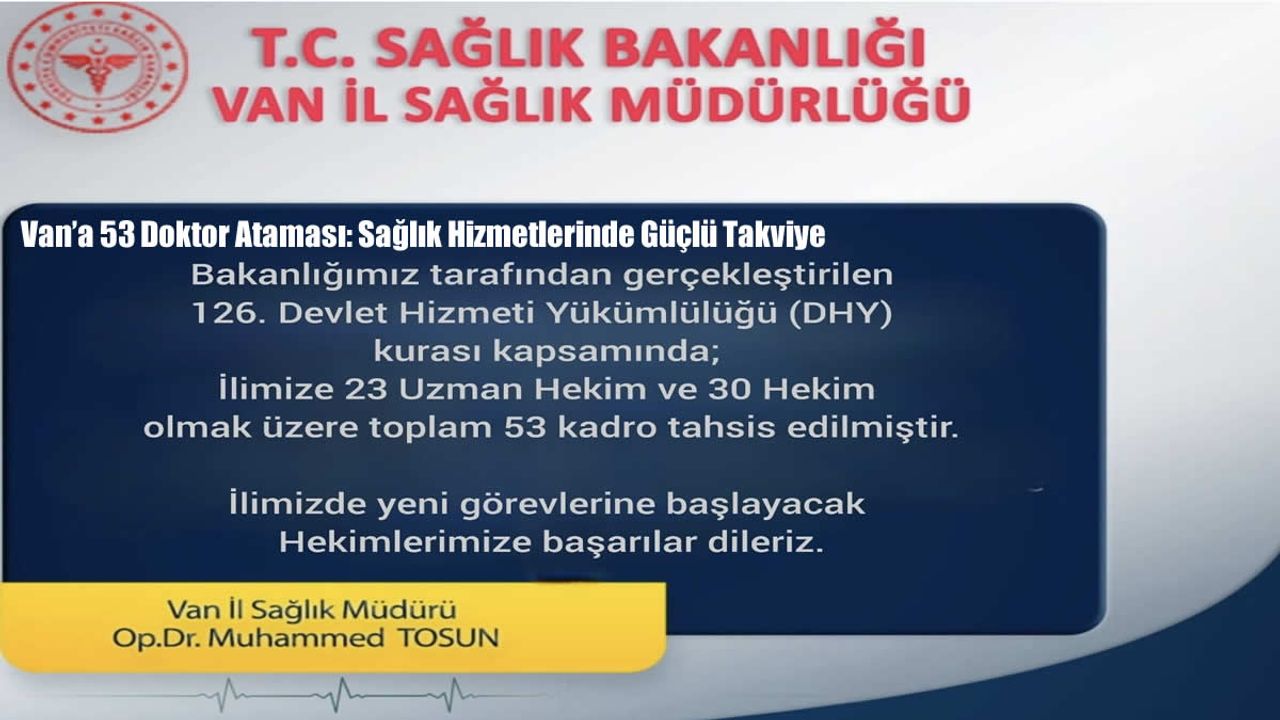 Van İl Sağlık Müdürlüğü tarafından yapılan açıklamada, ataması yapılan 53 hekimin il genelindeki farklı sağlık kuruluşlarında görev alacağı belirtildi. Buna göre, uzman hekimler ağırlıklı olarak devlet hastaneleri ve eğitim-araştırma hastanelerinde görevlendirilirken, pratisyen hekimlerin ise ilçe devlet hastaneleri, toplum sağlığı merkezleri ve aile sağlığı merkezlerinde hizmet sunması planlanıyor. Van İl Sağlık Müdürü Op. Dr. Muhammet Tosun, konuya ilişkin değerlendirmesinde, yeni atamaların sağlık sistemine önemli bir katkı sunacağını vurguladı. Tosun, göreve başlayacak hekimlere başarı dileklerini ileterek, bu sürecin hem sağlık çalışanları hem de vatandaşlar açısından olumlu sonuçlar doğuracağını ifade etti. Yapılan planlamalar doğrultusunda, sağlık tesislerindeki iş yükünün dengelenmesi, acil servislerdeki yoğunluğun azaltılması ve özellikle kırsal bölgelerde sağlık hizmetlerinin sürekliliğinin sağlanması amaçlanıyor. Atamalarla birlikte Van’da sağlık hizmetlerinin daha etkin, daha hızlı ve daha erişilebilir hale gelmesi bekleniyor. Bölge halkının sağlık hizmetlerine ulaşımında yaşadığı sorunların asgari seviyeye indirilmesi, koruyucu sağlık hizmetlerinin güçlendirilmesi ve tedavi süreçlerinin daha sağlıklı yürütülmesi hedefleniyor.