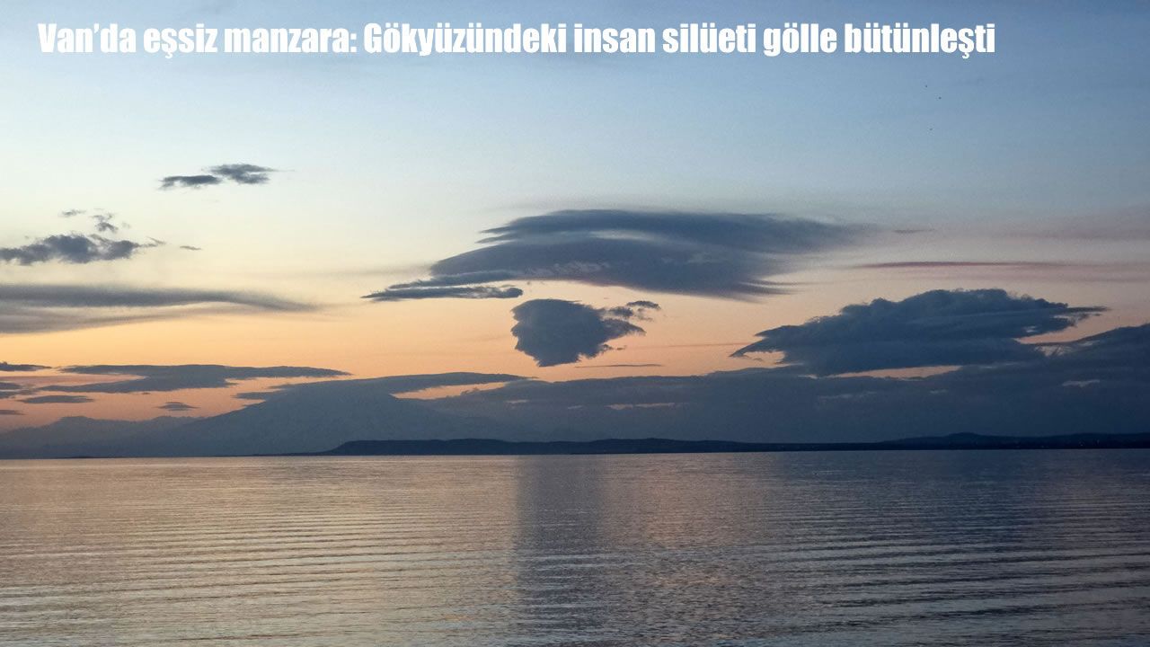 HABER49- Doğu Anadolu’nun incisi Van, bugün benzerine az rastlanır bir doğa olayına ev sahipliği yaptı. Şehir merkezinde akşam saatlerinde beliren bir bulut kümesi, şekliyle görenleri hem şaşırttı hem de heyecanlandırdı. Güneşin batışına yakın saatlerde gökyüzünde oluşan bulut kümesi, bir insan figürünü andıran şekliyle dikkat çekti. Akşam saatlerinde ortaya çıkan bulut oluşumu, insan figürünü andıran yapısıyla dikkat çekerken, durgun göl sularına yansımasıyla görsel şölen iki katına çıktı. Özellikle güneşin batışına yakın anlarda oluşan renk geçişleri, manzaraya ayrı bir estetik kattı. Kısa süre içinde şekil değiştiren bulut ve yansıması kaybolurken, Van semalarında yaşanan bu görsel şölen izleyenlerin hafızasında yer etti.