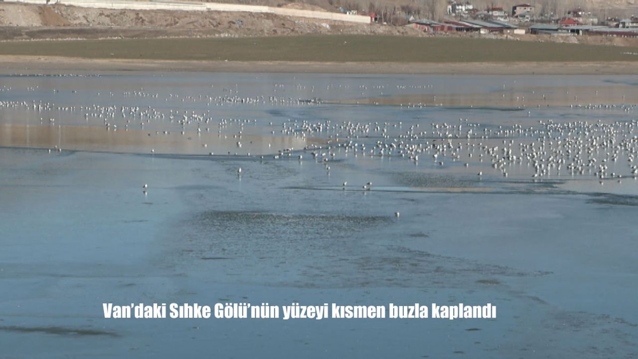 Hava sıcaklığının gece sıfırın altında 5 dereceye kadar düştüğü kentte, Van-Özalp kara yolunda sulama amaçlı kullanılan Sıhke Gölü'nün yüzeyi kısmen buzla kaplandı.