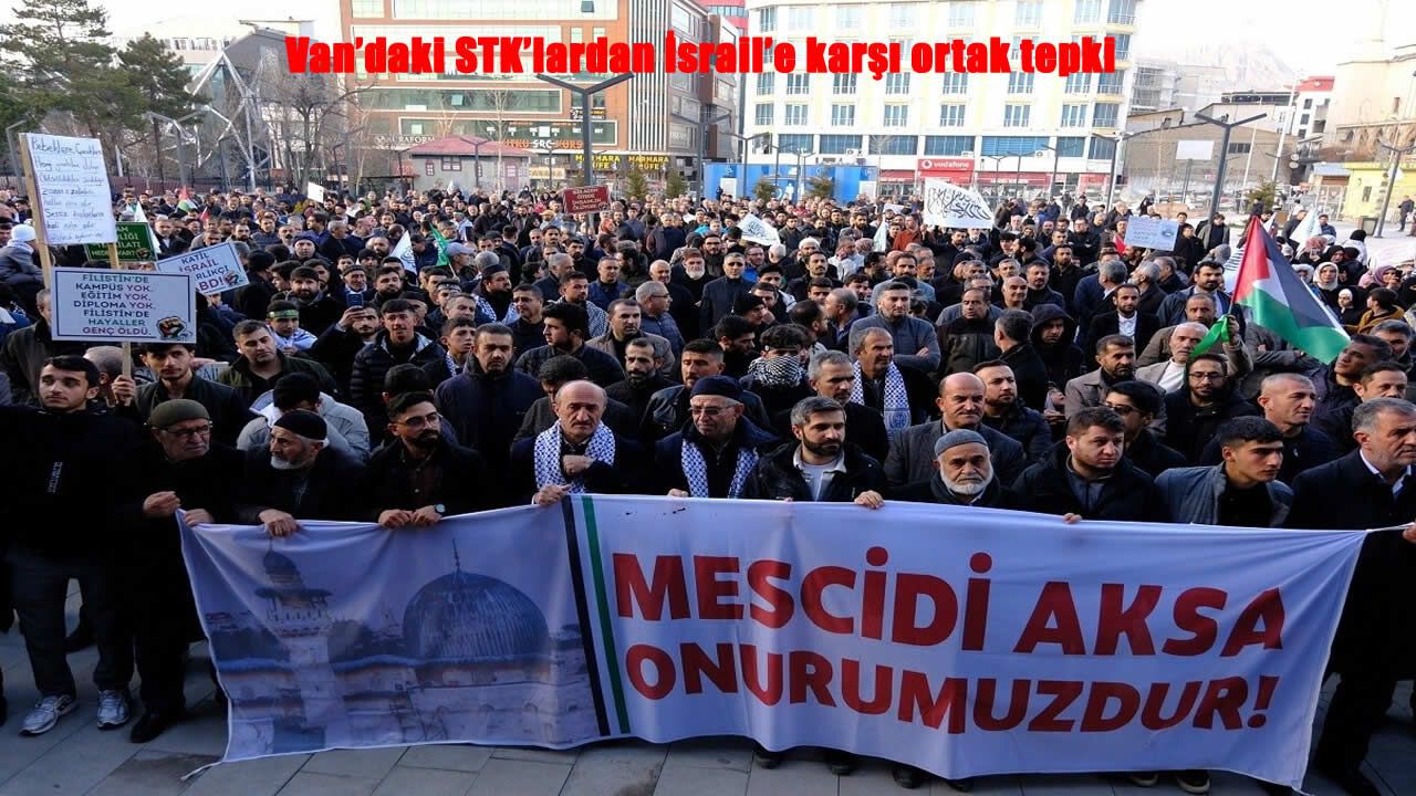 Van Filistin'e Destek Platformu ve Van Sivil Dayanışma İnisiyatifi öncülüğünde Beşyol Meydanı’nda toplanan binlerce vatandaş, Kent Meydanı’na kadar yürüdü. Burada Kur’an-ı Kerim tilavetiyle başlayan basın açıklamasını Van Filistin'e Destek Platformu Dönem Sözcüsü Ahmet Faruk Çevik okudu. Çevik, "Ümmet coğrafyası ateş çemberinde, Siyonist İsrail ve işbirlikçisi ABD bölgemizi yakıp yıkmaya devam ediyor. Çocuklar, kadınlar ve masumlar gözlerimizin önünde her gün katlediliyor. Bizlere evlerimizde oturmak yakışmaz, işte bugün zalime karşı mazlum kardeşlerimizin yanında olduğumuzu haykırmak ve tüm dünyada bu zalimleri lanetlemek ve zulmün durdurulmasını da bizleri yönetenlerden istemek için bir araya geldik. Bizler, bölgemizde yürütülen kirli senaryoları, zulmü ve katliamları lanetliyoruz. Bölge halklarının iradesini yok sayan, sınırları kanla yeniden çizmeyi hedefleyen hiçbir askeri girişimi, işgali ya da saldırıyı kabul etmiyoruz. Kendi topraklarımızda hem işgalci İsrail’i hem de bölgeyi kaos bataklığına çeviren Amerikan askeri varlığını reddediyoruz" dedi.