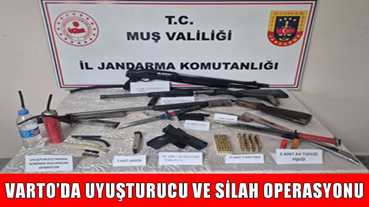 HABER49-Varto’da iki şüphelinin gözaltına alındığı operasyonda çok sayıda ruhsatsız silah, uyuşturucu madde ve kullanım aparatları ele geçirildi.