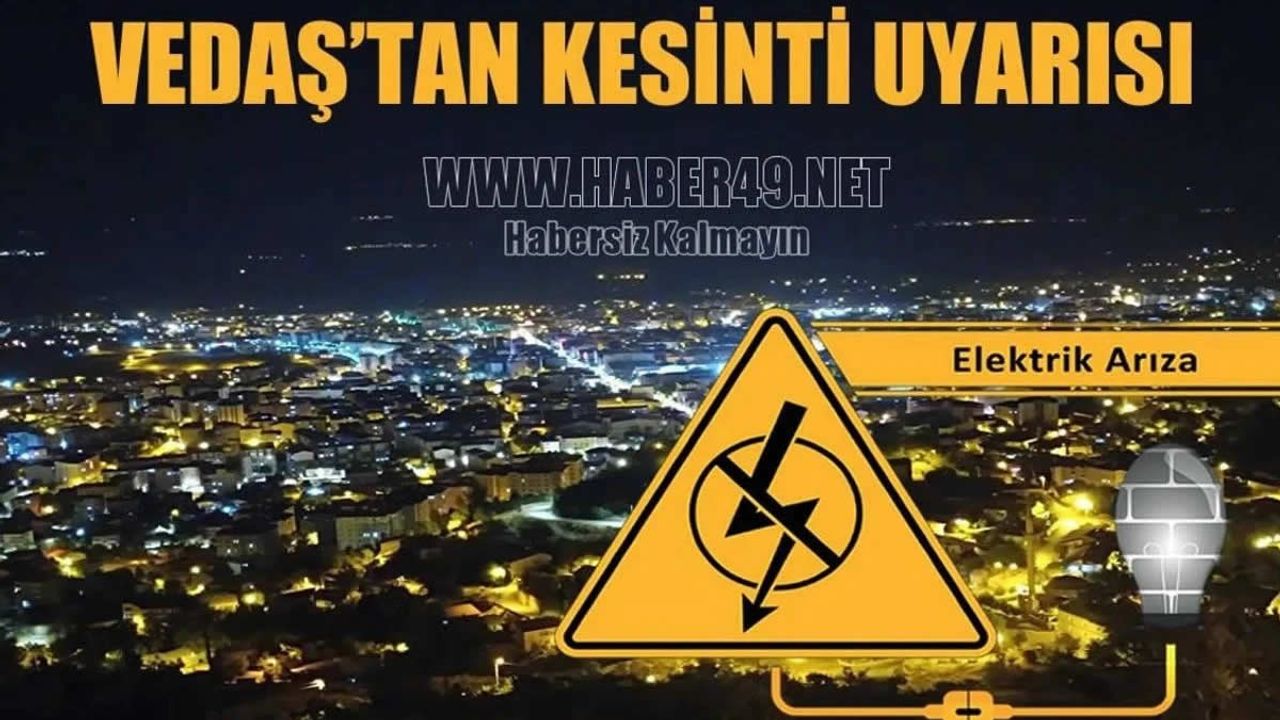 HABER49-VEDAŞ, 25 Kasım’da Muş’un Hasköy, Korkut, Varto, Bulanık ve Malazgirt ilçelerinde planlı bakım ve onarım çalışmaları nedeniyle elektrik kesintisi olacağını duyurdu. Vangölü Elektrik Dağıtım A.Ş. (VEDAŞ), 25 Kasım 2025 Pazartesi günü Hasköy ilçesi Yapraklı, Yerkaya ve Altaylar köyleri ile belediye su deposunda planlı bakım ve onarım çalışması yapılacağını açıkladı. Çalışmalar nedeniyle sabah 09.00’dan akşam 17.00’ye kadar elektrik kesintisi uygulanacak.