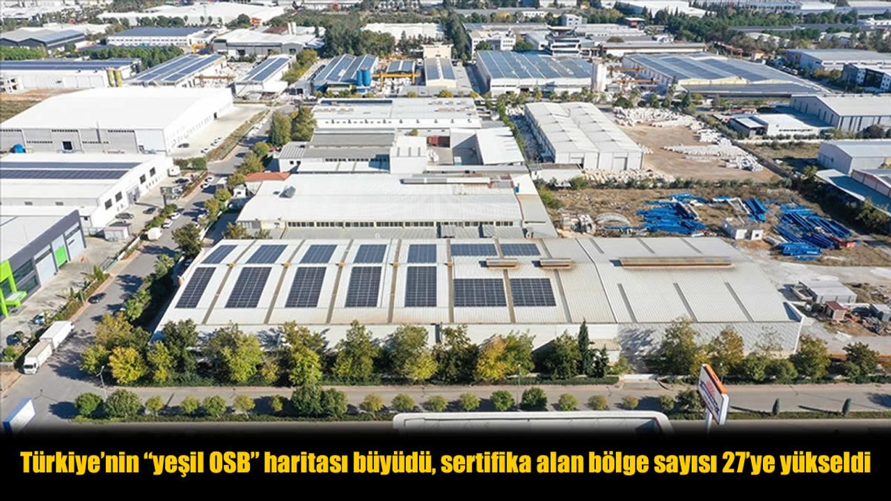 Bu kapsamda Türk Standardları Enstitüsü (TSE) de çalışmalarını eksiksiz tamamlayan ve faaliyetlerini sürdürülebilirlik üzerine yürüten OSB'lere sertifika veriyor. Bugüne kadar Türkiye'de TSE'den Yeşil OSB Sertifikası alan bölge sayısı 27'ye yükseldi.